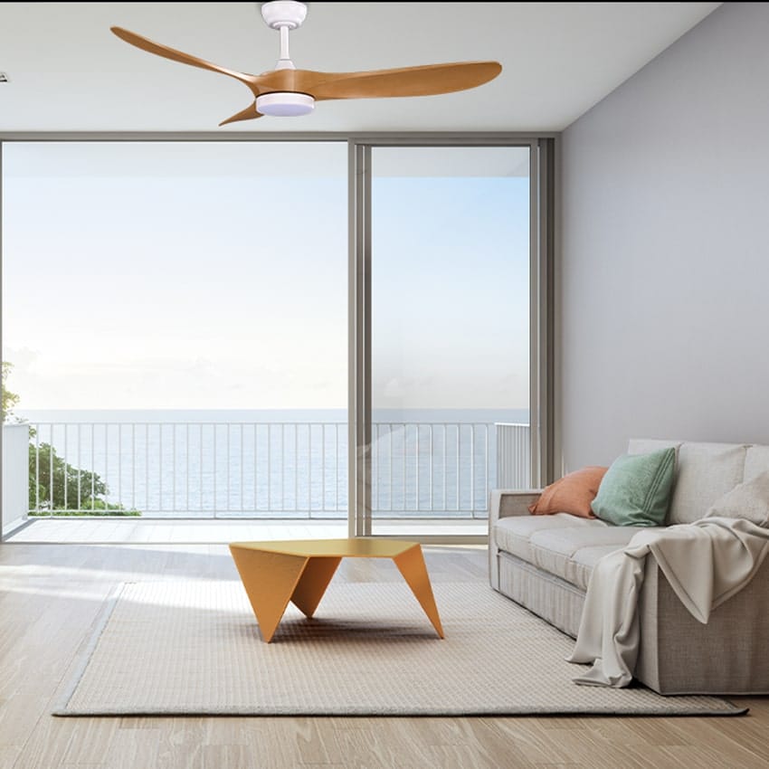 מאוורר תקרה 52" YORK בצבע לבן/עץ טיק כולל שלט ותאורה, מנוע DC
